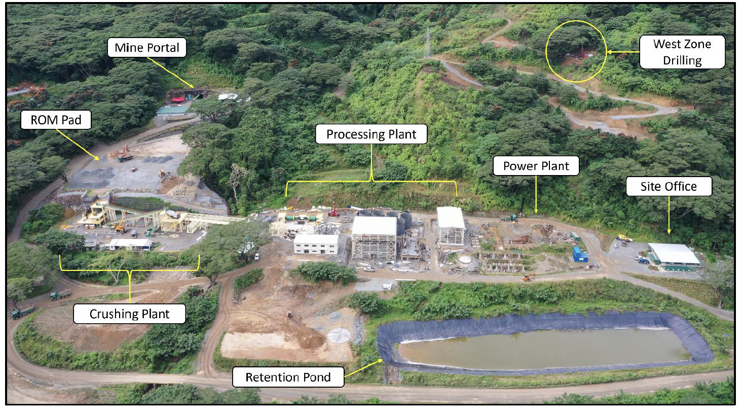 Figure 3. Aerial view of mine portal, ROM pad, and crushing plant, June 16, 2023.